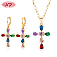 L'ensemble de bijoux chrétiens Cross Religion est toujours un style de bijoux tendance, serti de AAA CZ et plaqué en or 18 carats.